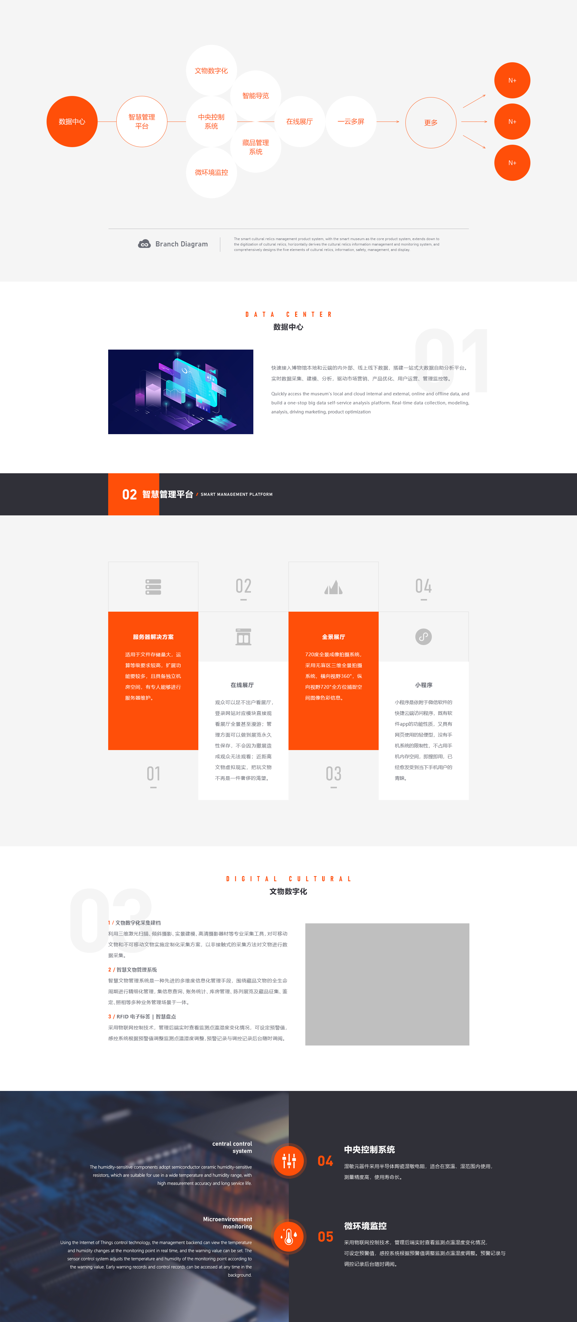 智慧文物管理产品体系,以智慧博物馆为核心产品体系,向下延伸至文物数字化,横向衍生文物信息管理监视系统,围绕文物、信息、安全、管理、展示五大要素进行综合设计。